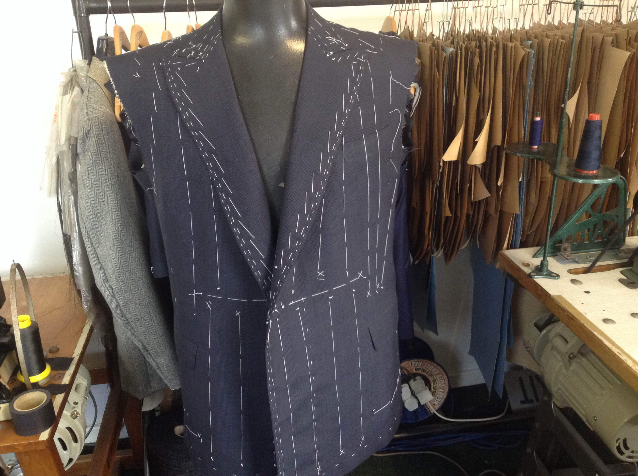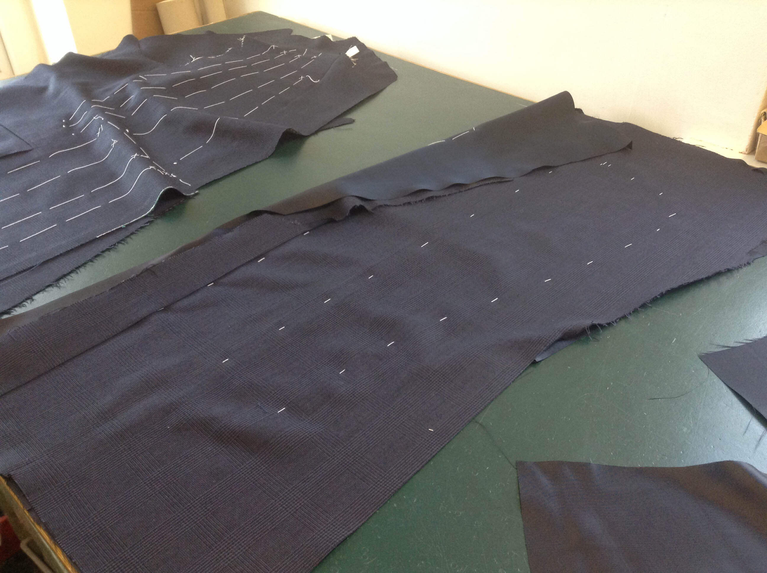 The next picture shows a clients partially made bespoke DB coat on my tailors dummy. This cloth has a lovely blue hue with a subtle, but defined glen check running through it and is a perfect alternative choice to the dreaded solid blue. The overcheck blends in so well you can only see it when you are quite close.