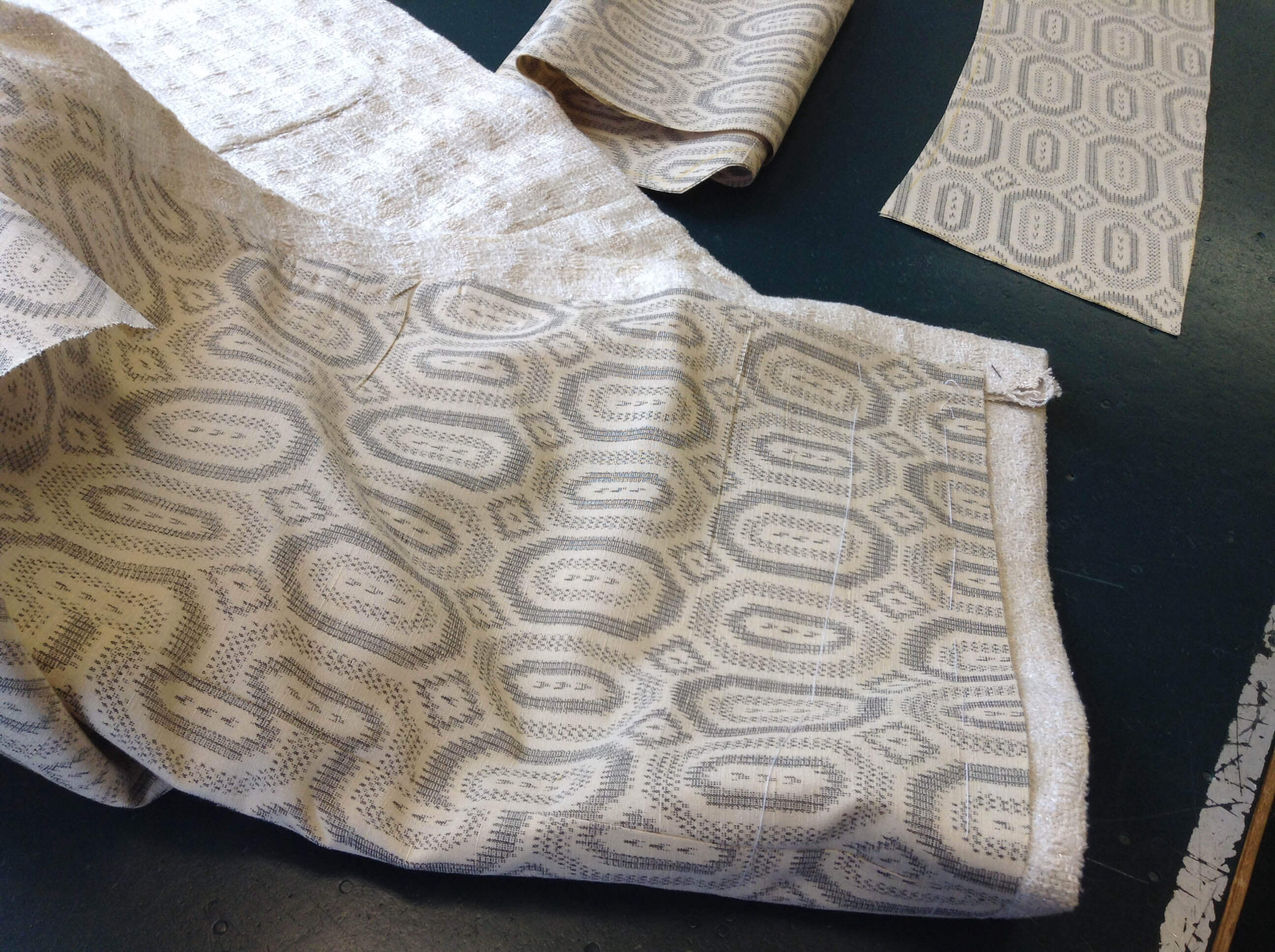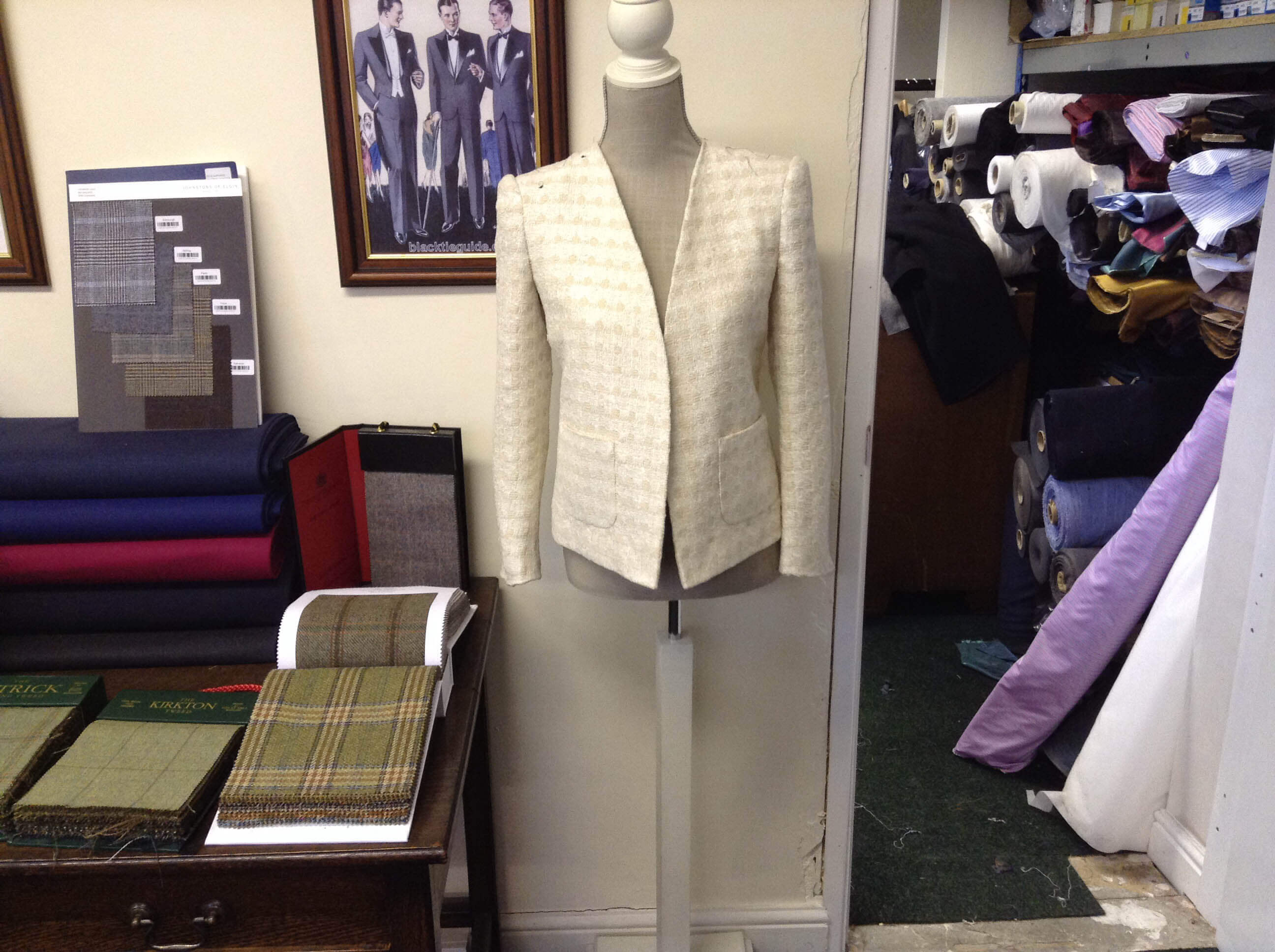 The picture above is a closer shot of the cloth, which has come from the very same supplier that Coco Chanel actually bought her cloth from for her classic Little Black Jackets.