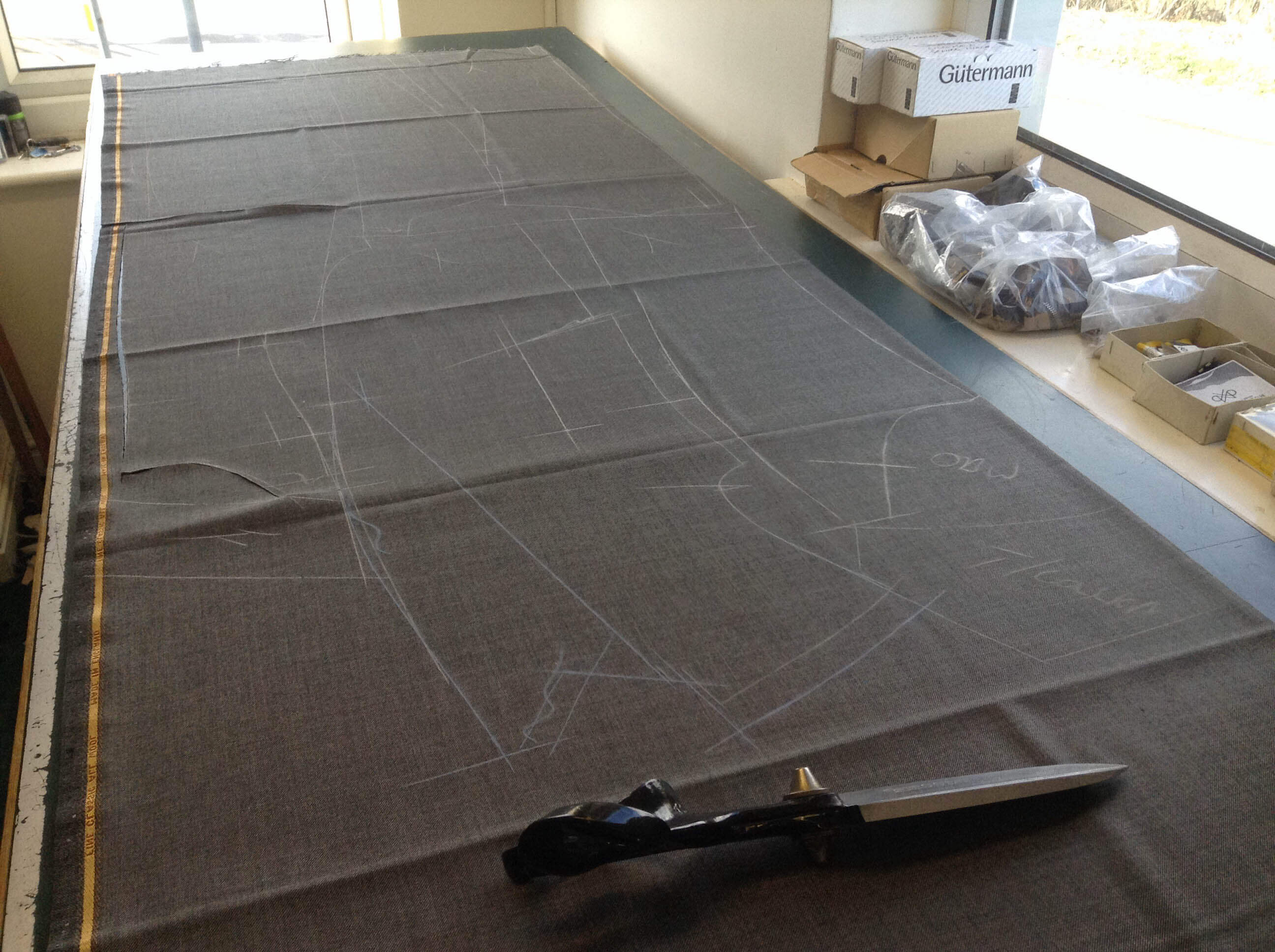 The picture below shows my clients suit cut out. You can also see in this picture the canvasses that I have also cut out for the coat.