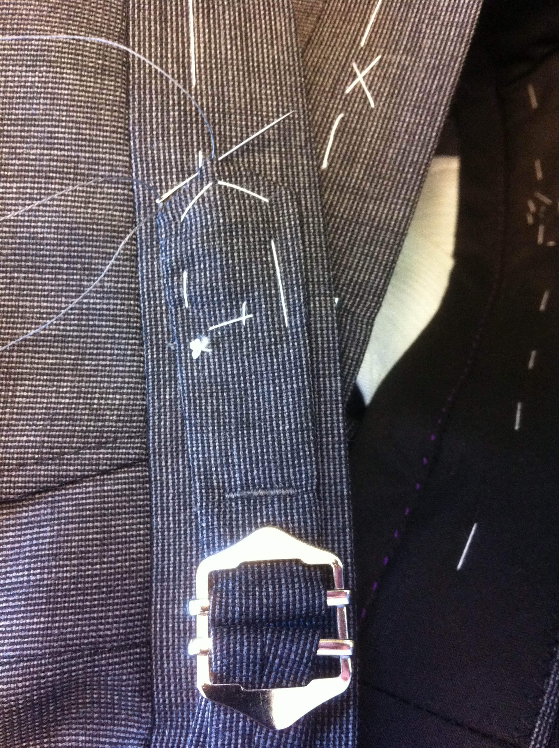the picture on the left shows another pair of made to measure trousers I am making, the side adjusters are basted in place waiting to be hand finished.