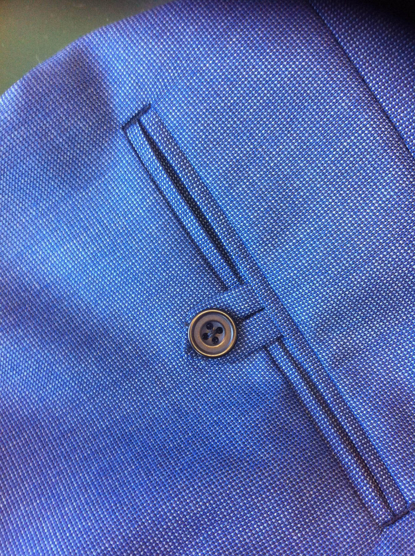 Both my clients with these trousers when asked preferred their adjusters to be placed on the actual waistband. It’s all down to personal taste really. That’s one of the advantages of having your trousers made to measure, you get exactly what you want.